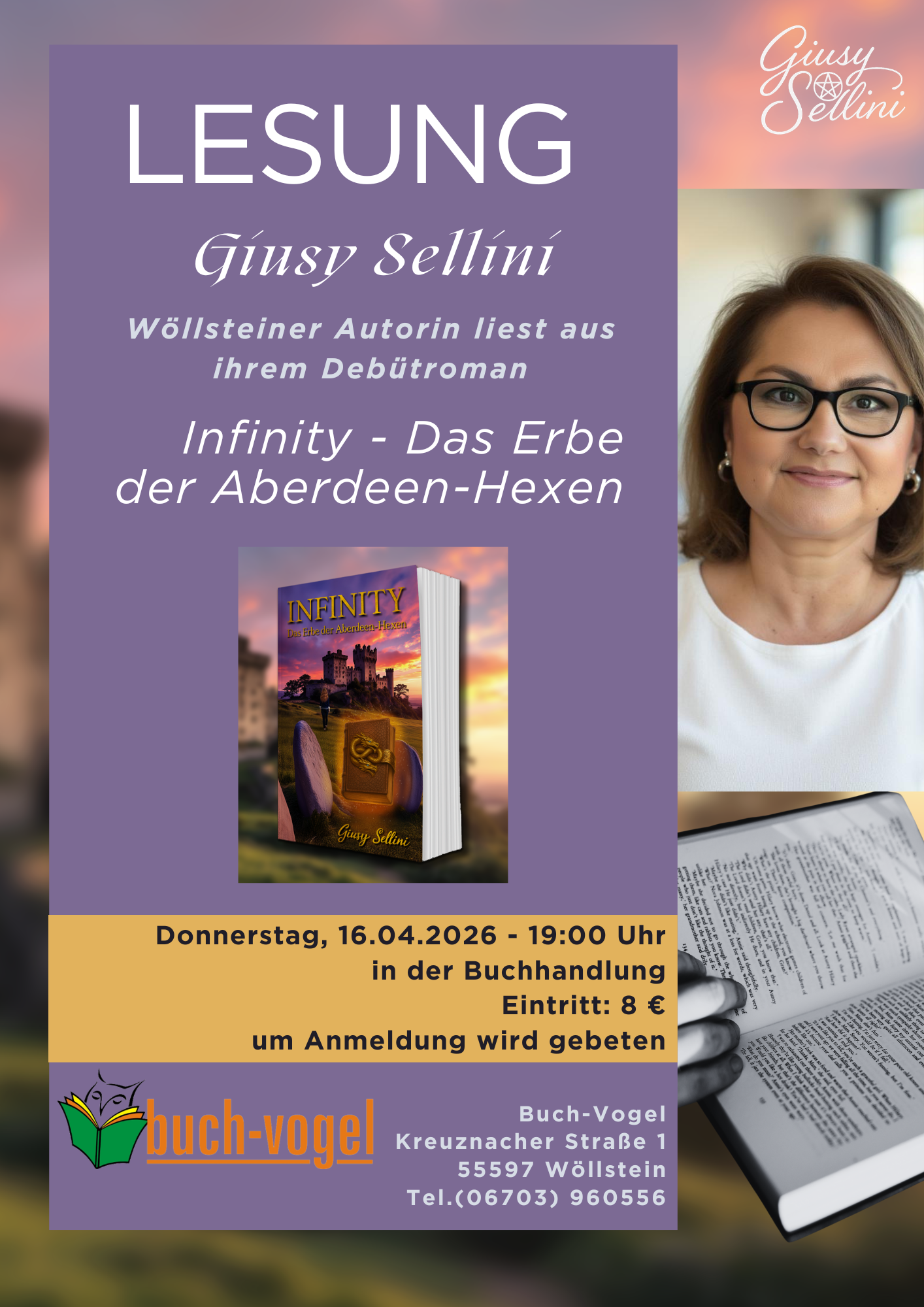Platzieren Sie hier Ihre eigenen Texte und Bilder. Bearbeiten Sie diesen Text einfach durch einen Doppelklick.Lesung in der Buchhandlung Buch-Vogel in Wöllstein
